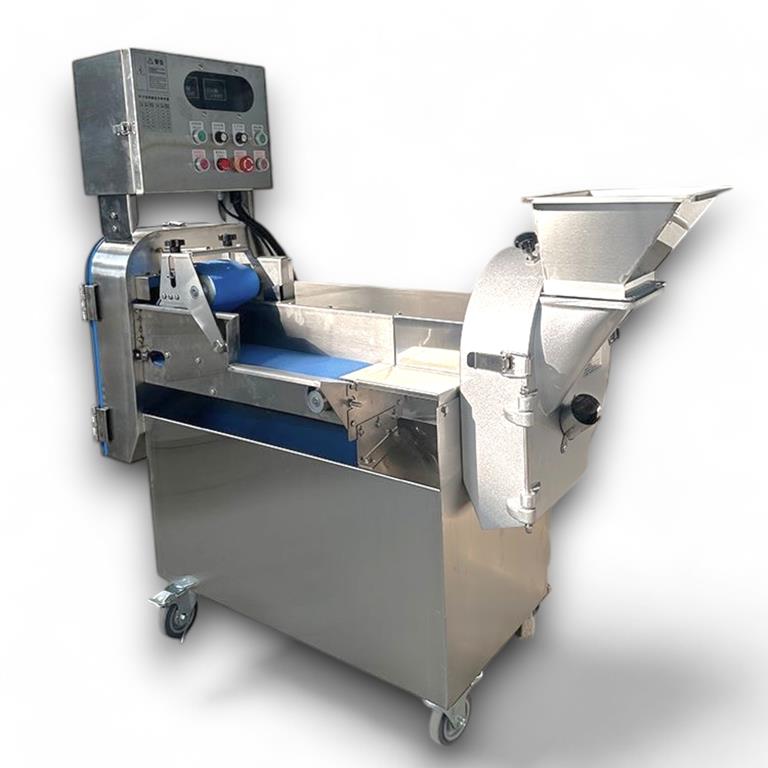 máy thái rau YQC850, máy cắt rau công nghiệp 2 đầu, máy thái sợi lát hạt lựu, máy thái năng suất 1000kg/h.